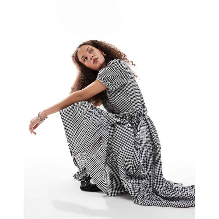 Product Name: Black and white gingham midi dress top