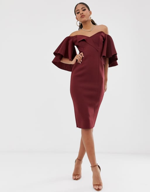 Product Name: Cape flutter bardot midi dress top