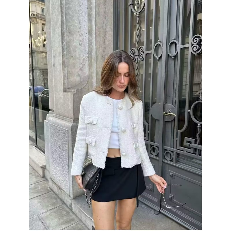 Product Name: Chaqueta corta blanca mujer top