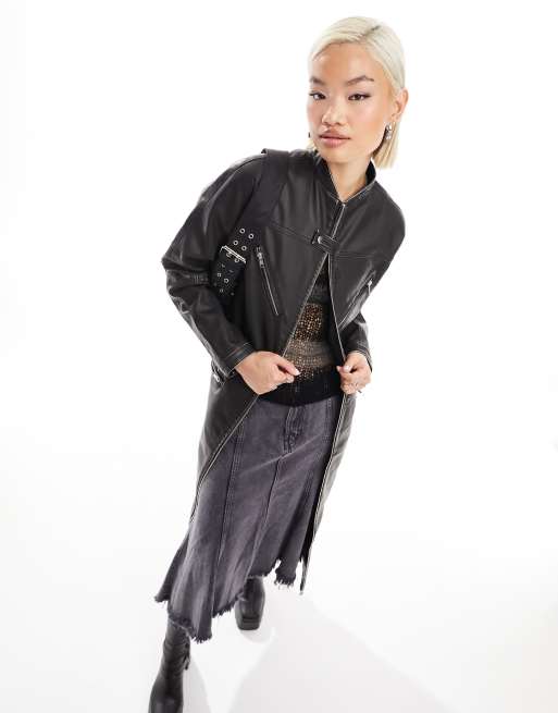 Product Name: Collusion oversized leather look biker jacket top