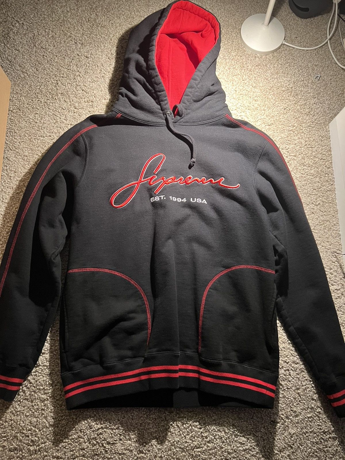 Product Name: Contrast embroidered hooded sweatshirt supreme top