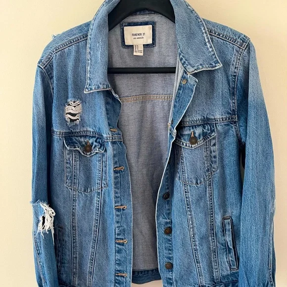 Product Name: Distressed jean jacket forever 21 top