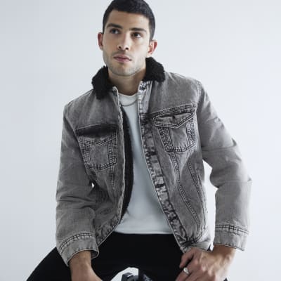 Product Name: Grey denim jacket borg collar top