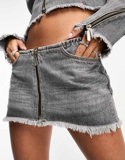Product Name: Grey denim mini skirt uk top