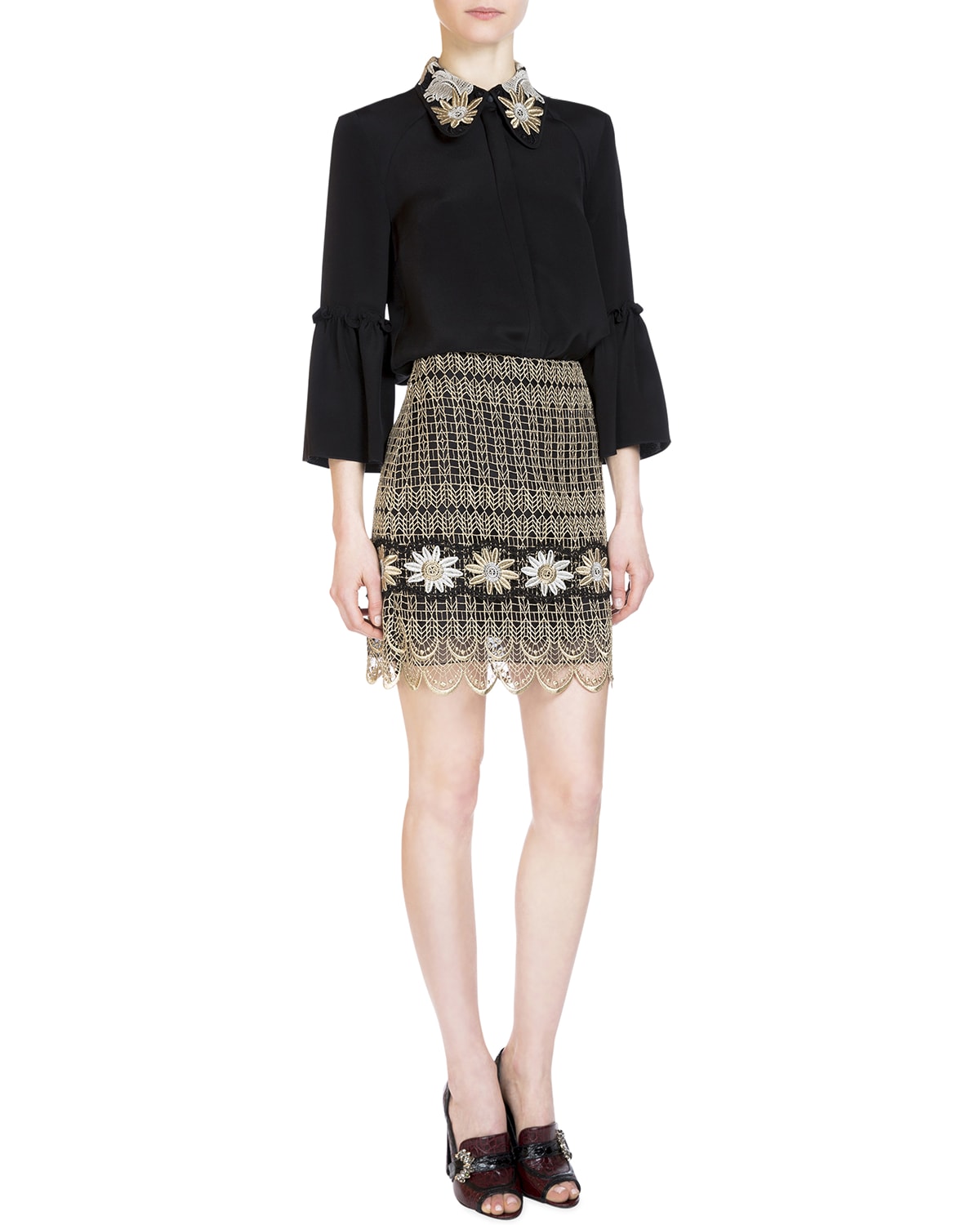 Product Name: Metallic embroidered skirt top