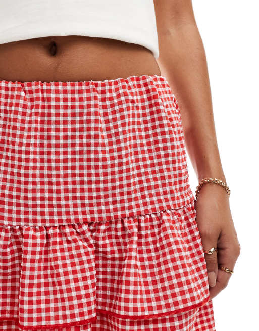 Product Name: Pleated red gingham skirt top